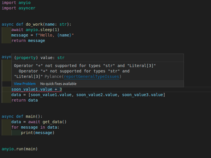 Because of the way Asyncer is designed, you will get typing support in these SoonValue objects and their soon_value1.value attribute.